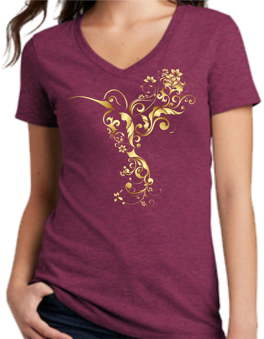 Metallic Hummingbird Flourish Women's V-Neck